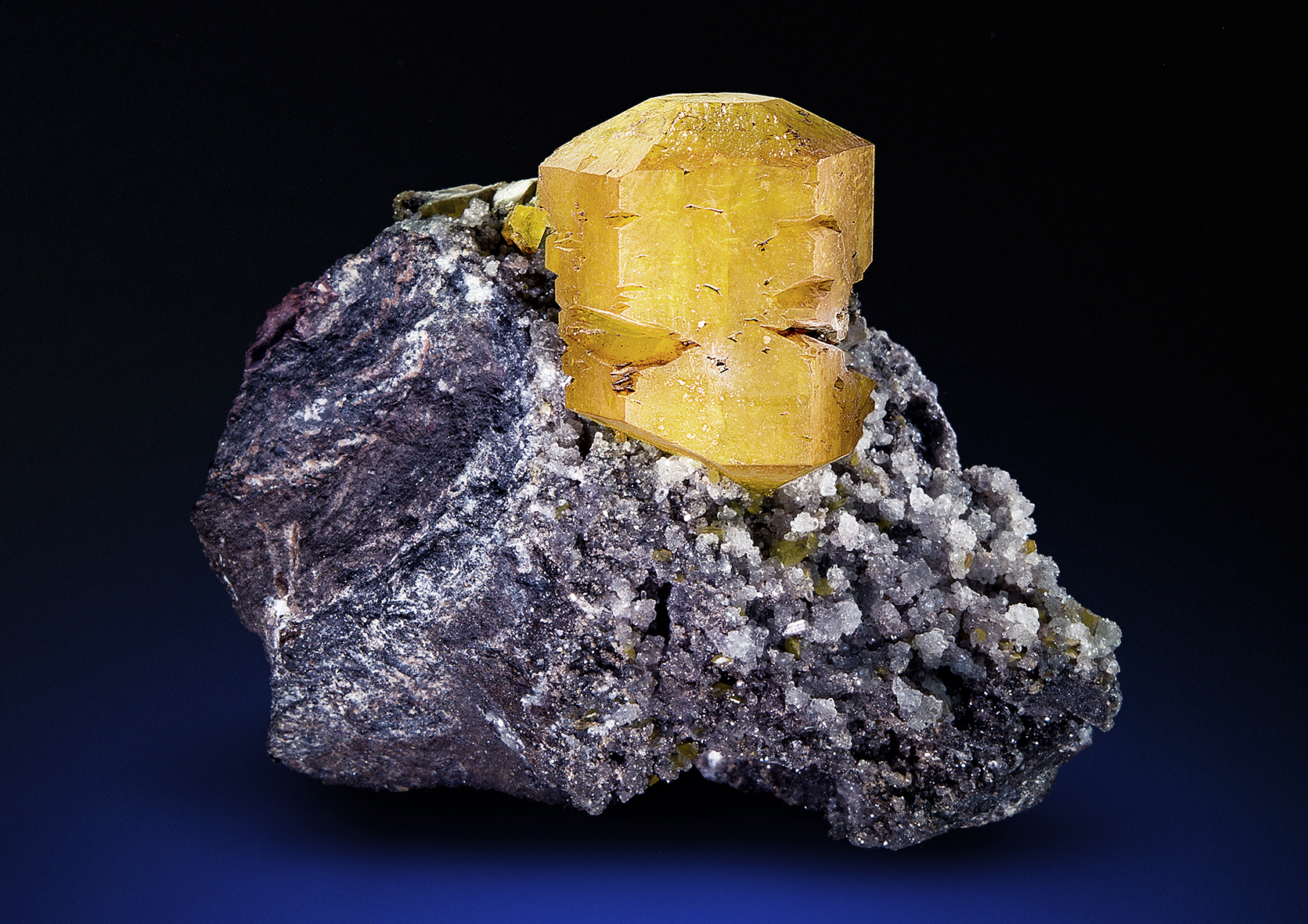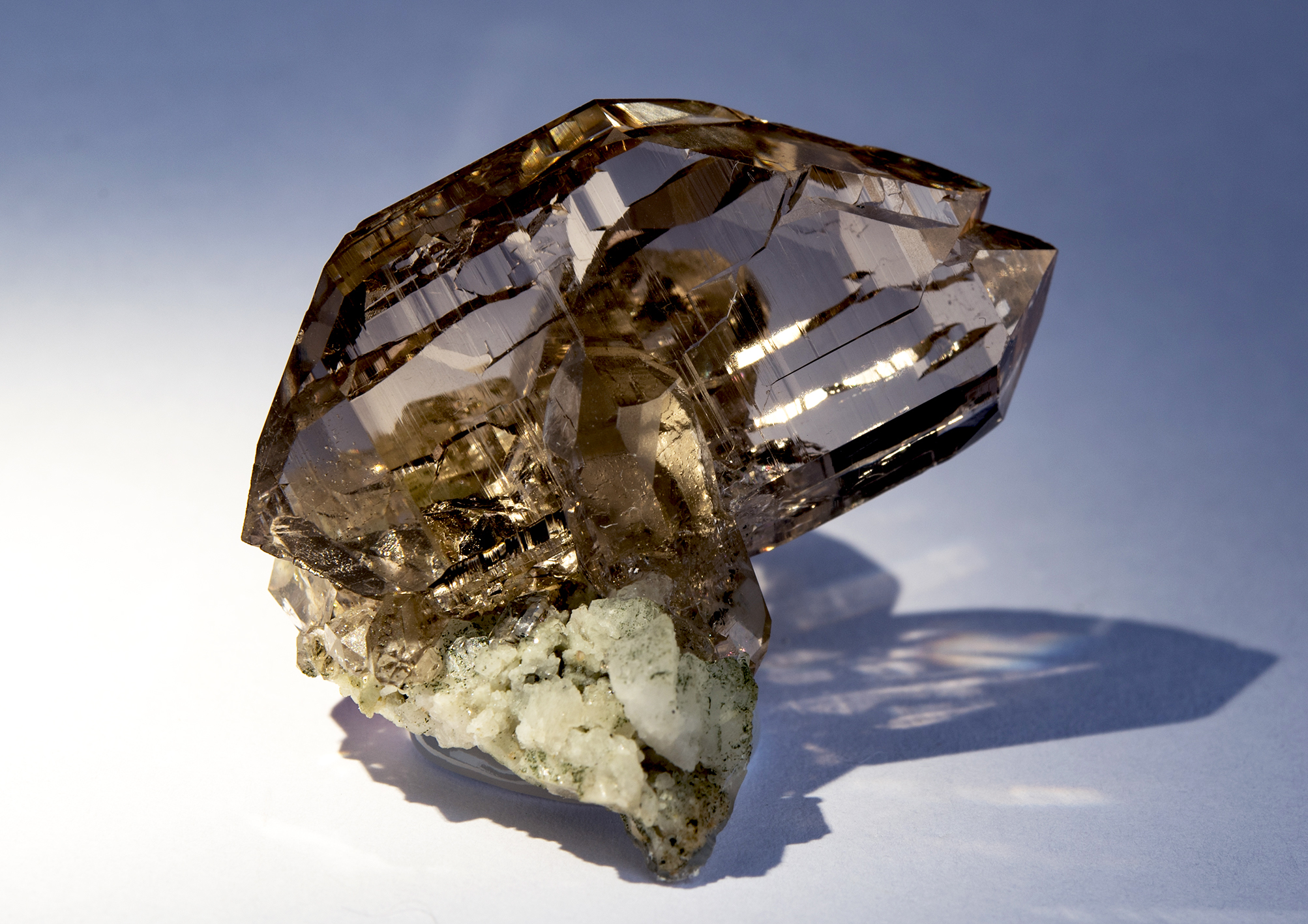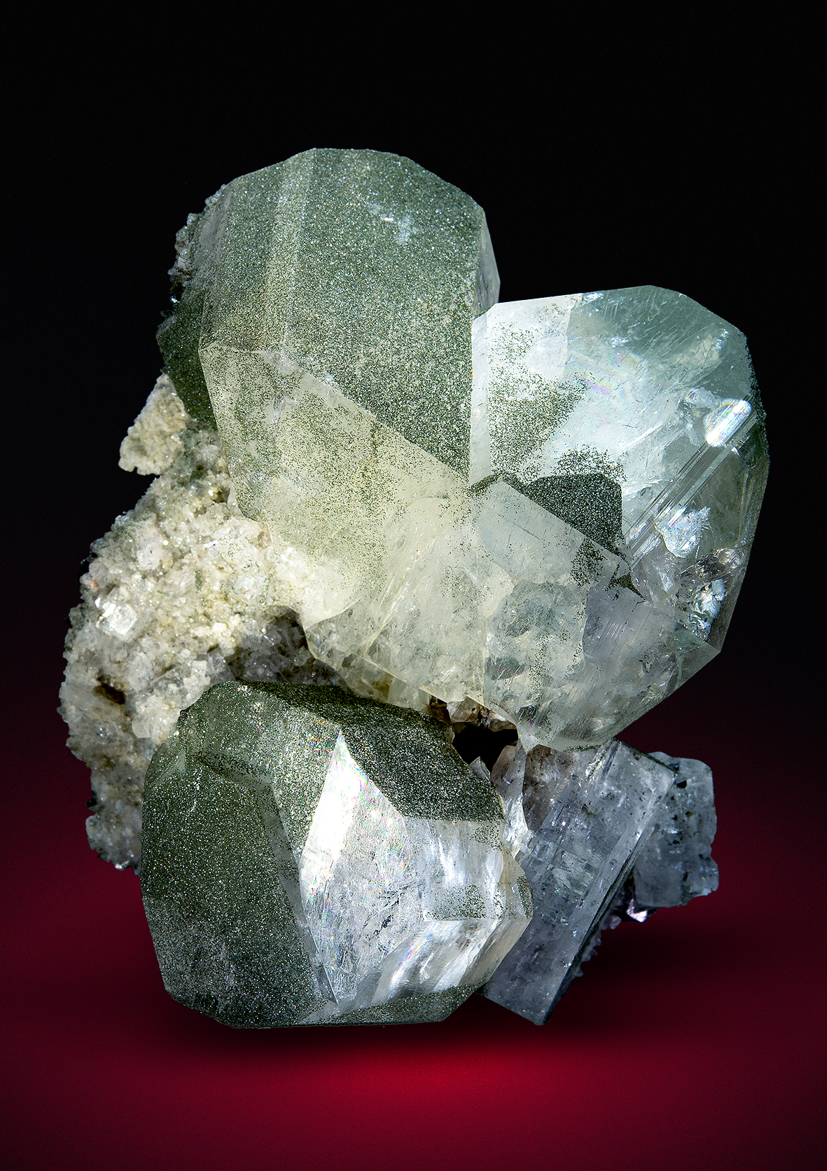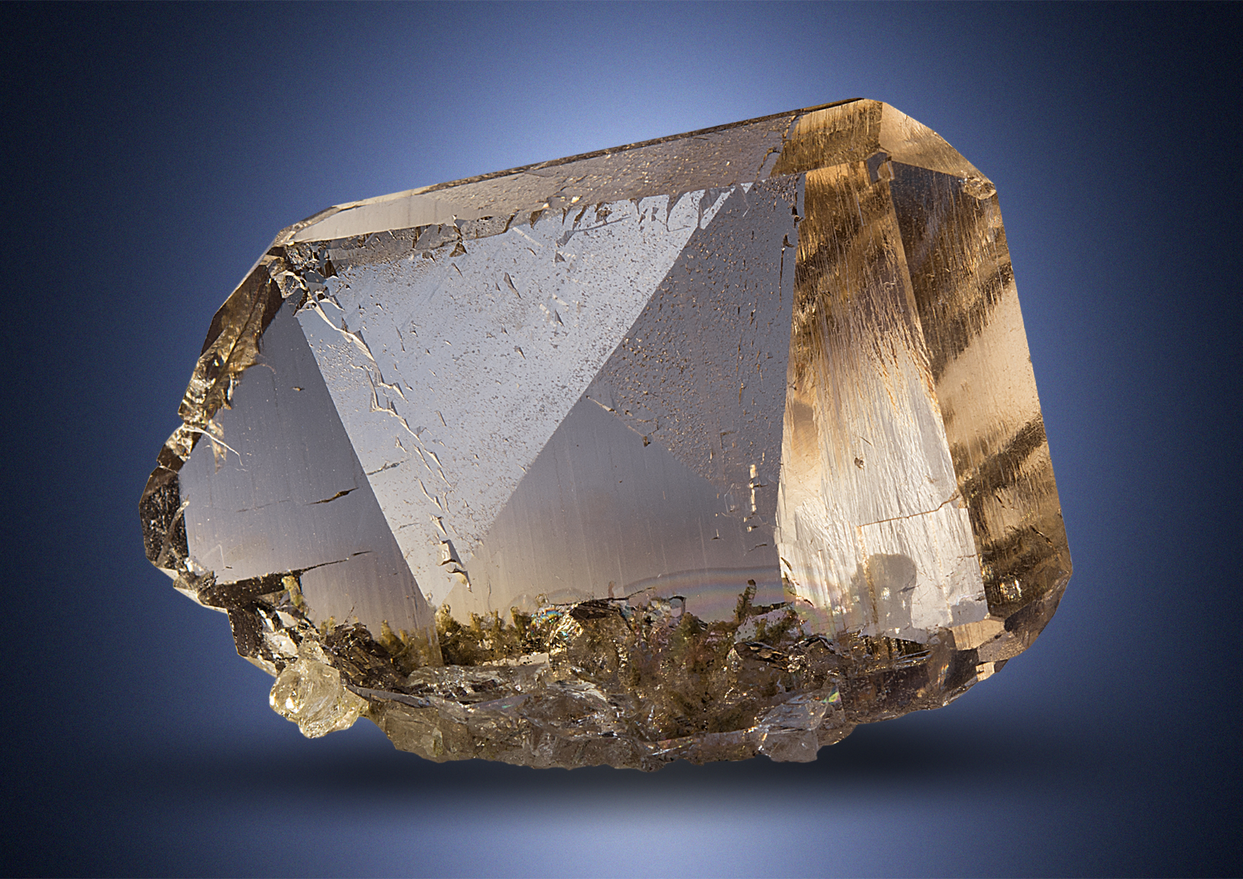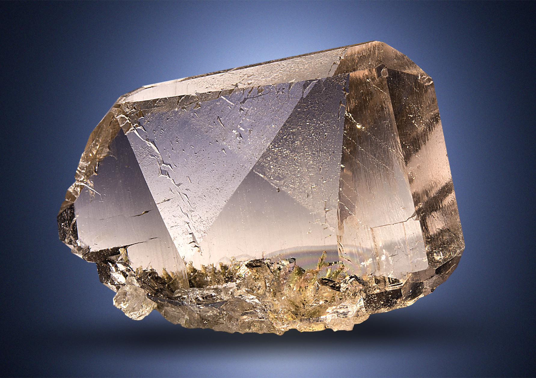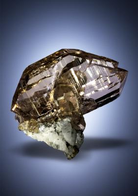 This single apatite crystal impresses with its massy body - 1.8 cm thick - as well as its polyhedral crystal habit. The apatite is clear, lustrous and in good condition. Aside of one damage at the bottom, there is no visible flaw on this piece. An appealing specimen of imposing size and quality!