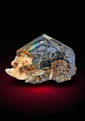 There might be many details on this piece - it is doubly terminated, free of damage, gemmy and lustrous - but to getting to the point: It's all about the color here! A blazing raspberry red that is visible even at low light and fills the whole crystal with its grace. At the termination this color gets an orange tinge. The backside of the tourmaline is covered in sparkling crystals that add a very nice effect. Very beautiful and catchy from the famous find made by Ailton Barbosa in 1978. This piece has a remarkable provenance, as it has been part of the collection of P. D. & Ann Sams. The label is coming with the piece.