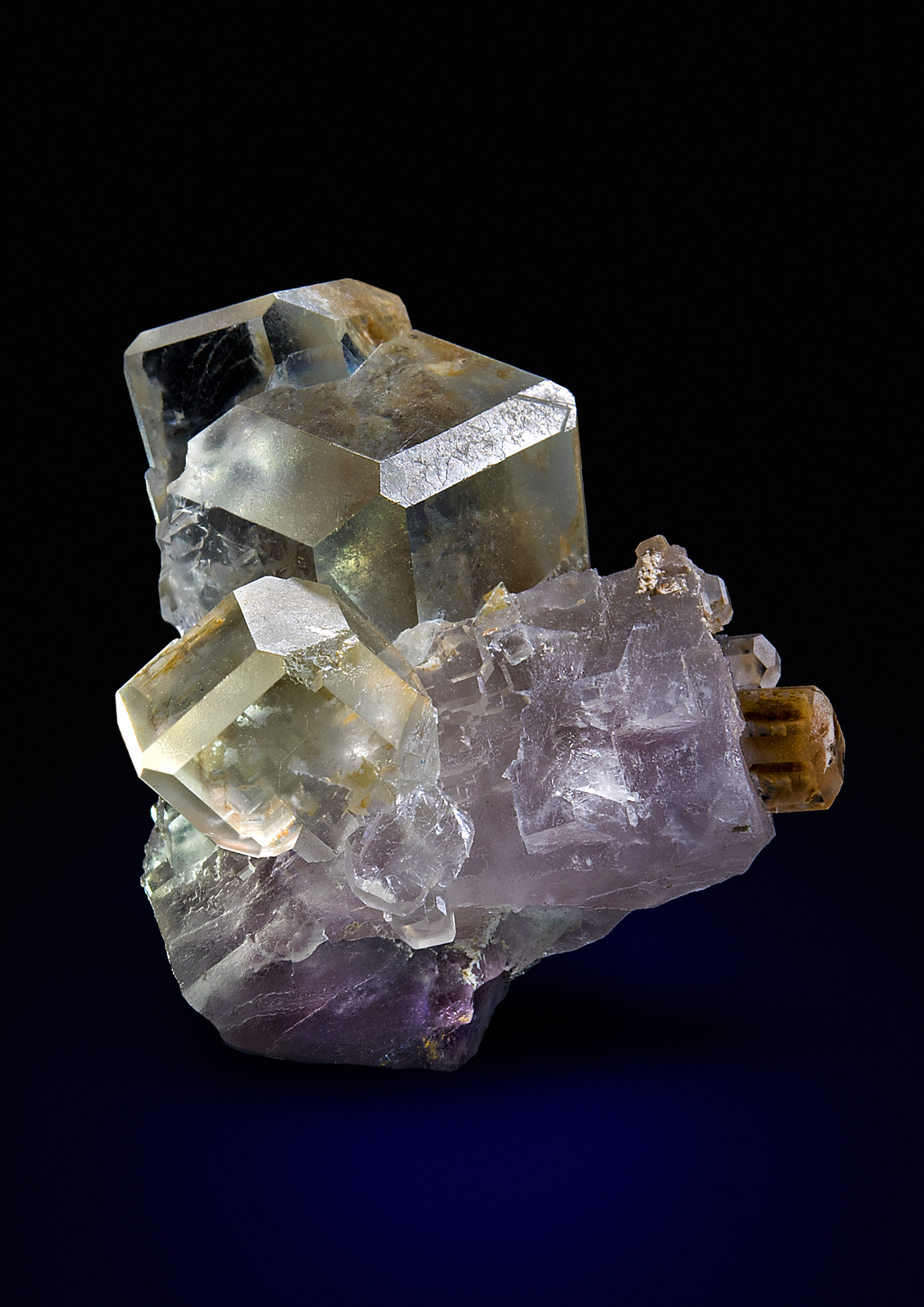A luscious purple heart is nested on a greenish fluorite as if it was set there on purpose. Unlike with other specimens from Zogno where this purple zone is deep inside the green flurote, here it is free and directly visible. This piece is a floater in generally good condition with some minor chips that are but hardly visible amidst the manifold details this excellent piece offers. An unusual and utterly beautiful fluorite from this famous locale!