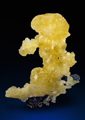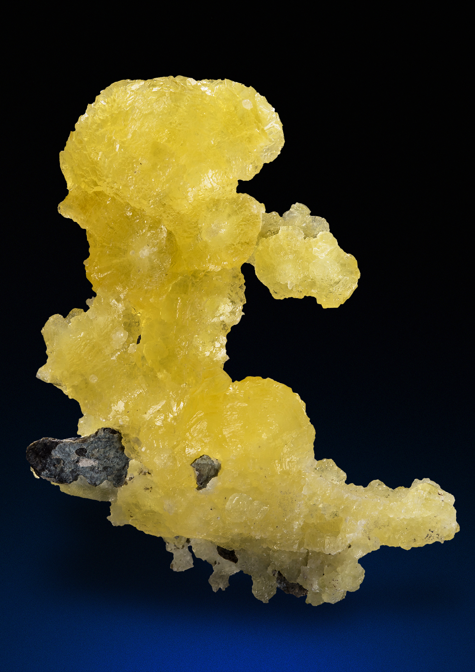 This sculpturesque brucite is absolutely magnificent. It is grown on or around some small pieces of rock matrix but is basically a floater and in near flawless condition. The color is exceptionally intensive lemon yellow that is much stronger than on most specimens that come out of the mines in Killa Saifullah. Also the luster is just wonderful all around and as good as it gets. A fascinating specimen of fresh juicy color!