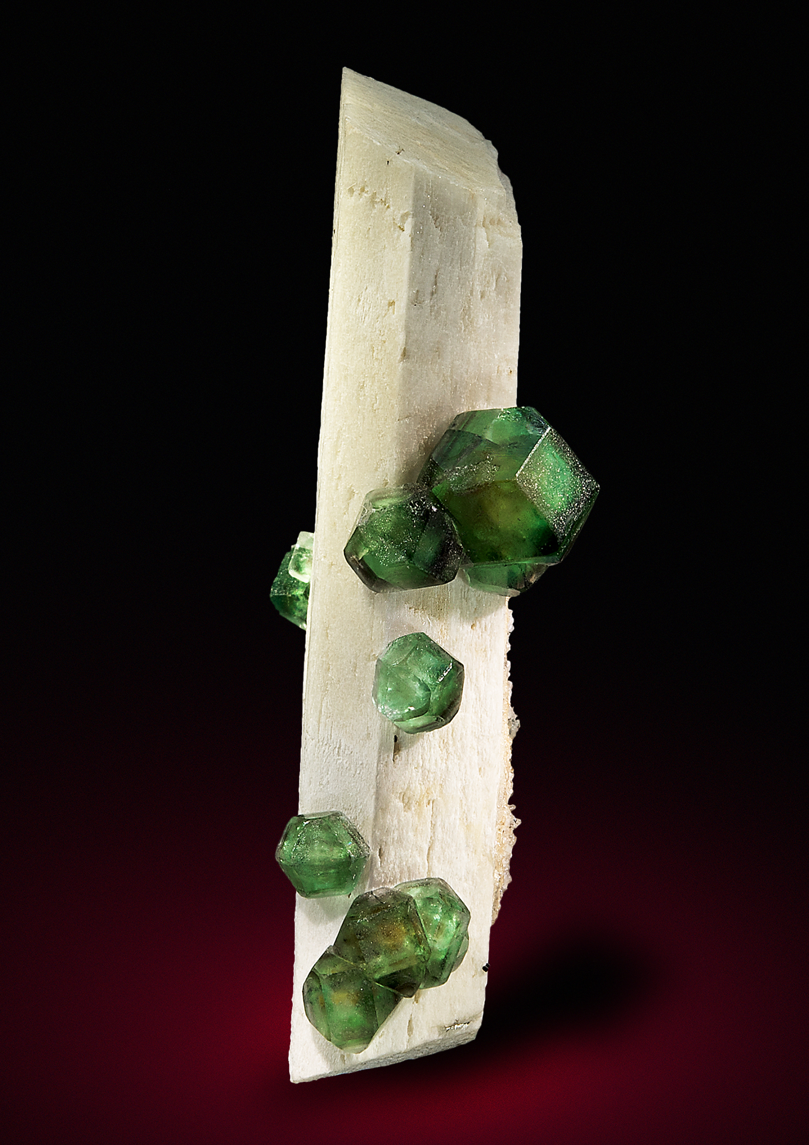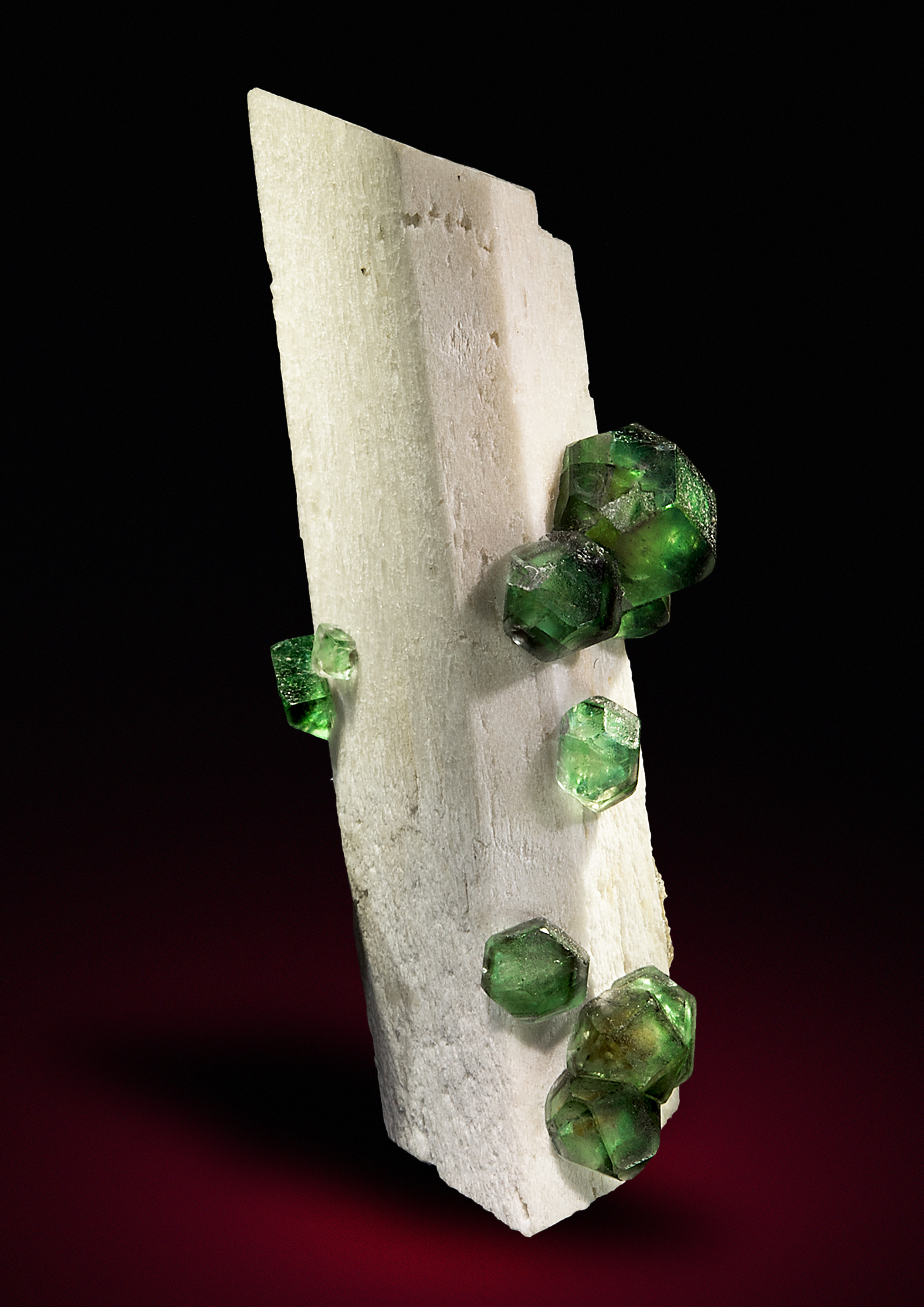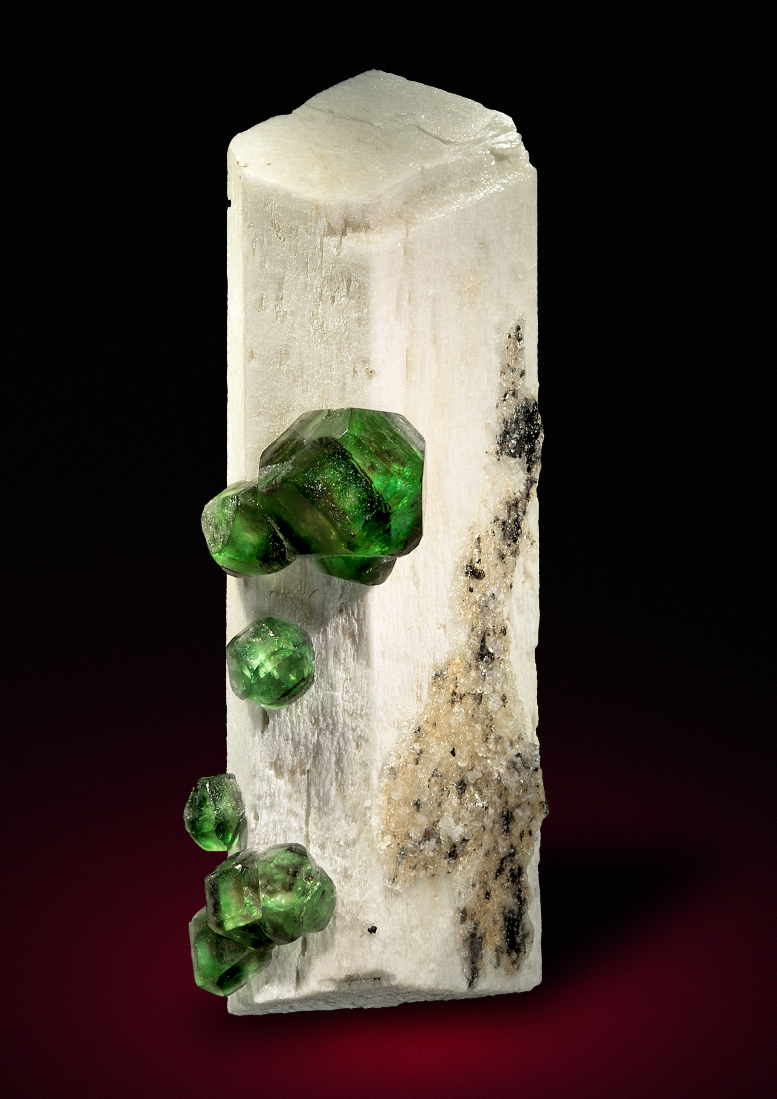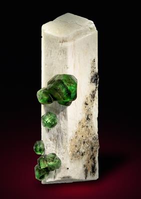 The focus of this specimen is clearly on the main augelite crystal. The casing of sharp and lustrous crystal faces is almost bursting with fabulous, radiant green. The augelite is gemmy and in practically perfect condition with just one minuscule contact. You rarely see crystals of such deep coloring as most of them are much paler with dull surfaces. What we have here is something else entirely, a real jewel. The matrix is of glassy white quartz with some smaller green augelite spread between them. It is a floater and free of damage. I recommend our video for a better view on the 3-dimensional qualities and the sparkling luster.