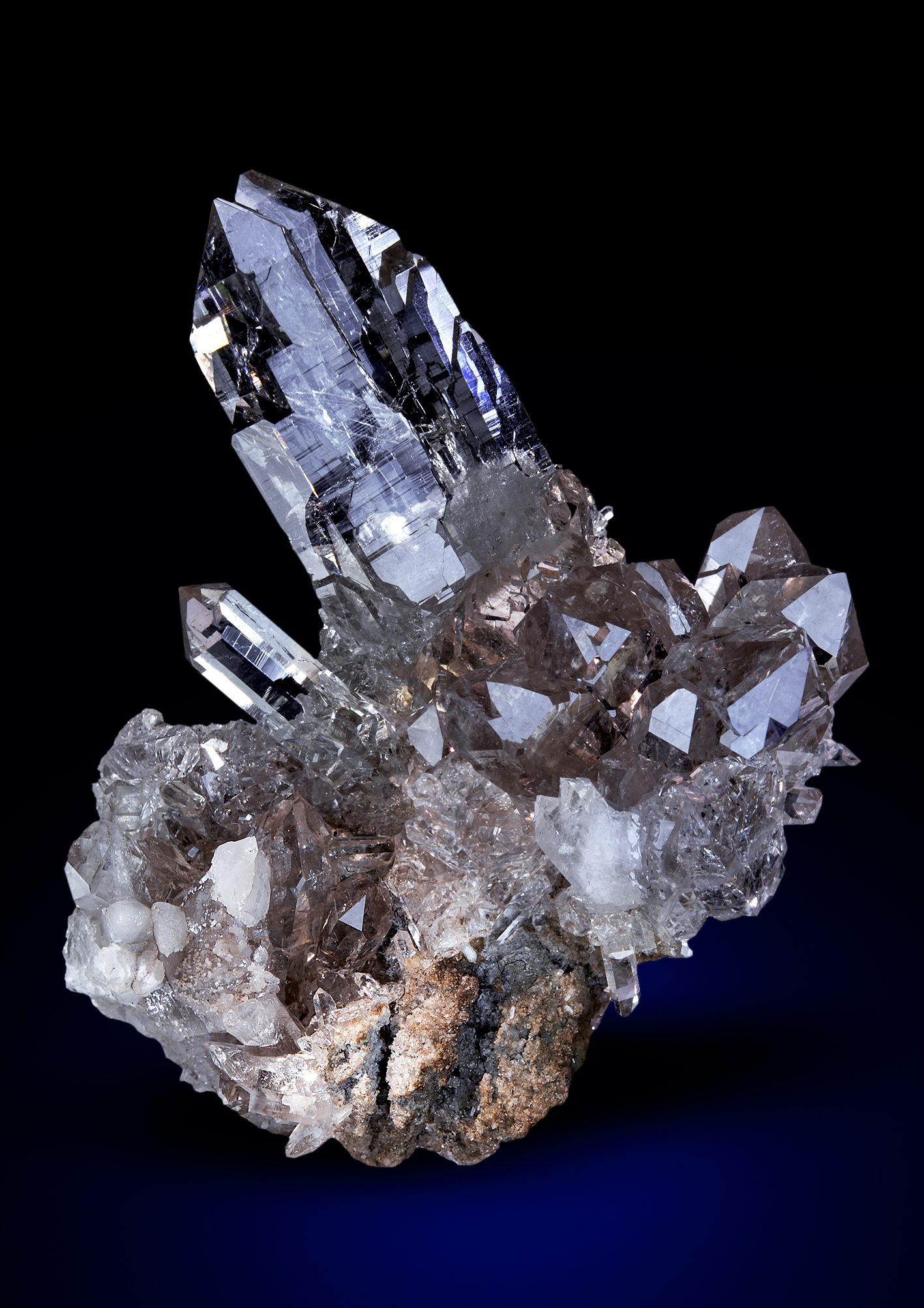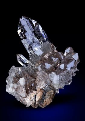 Hold on to something, that's as good as it gets! The quality of these quartz crystals, aesthetically arranged on that formidable specimen, is absolutely pristine and the best you will ever find. Extremely lustrous and perfectly clear. You could read a newspaper through the 3.4 cm thick main crystal without any trouble. All side crystals are of matching quality and visually support the main crystal. The untamed aesthetics makes for a real eye-catcher and leaves a natural yet somehow supernatural specimen!